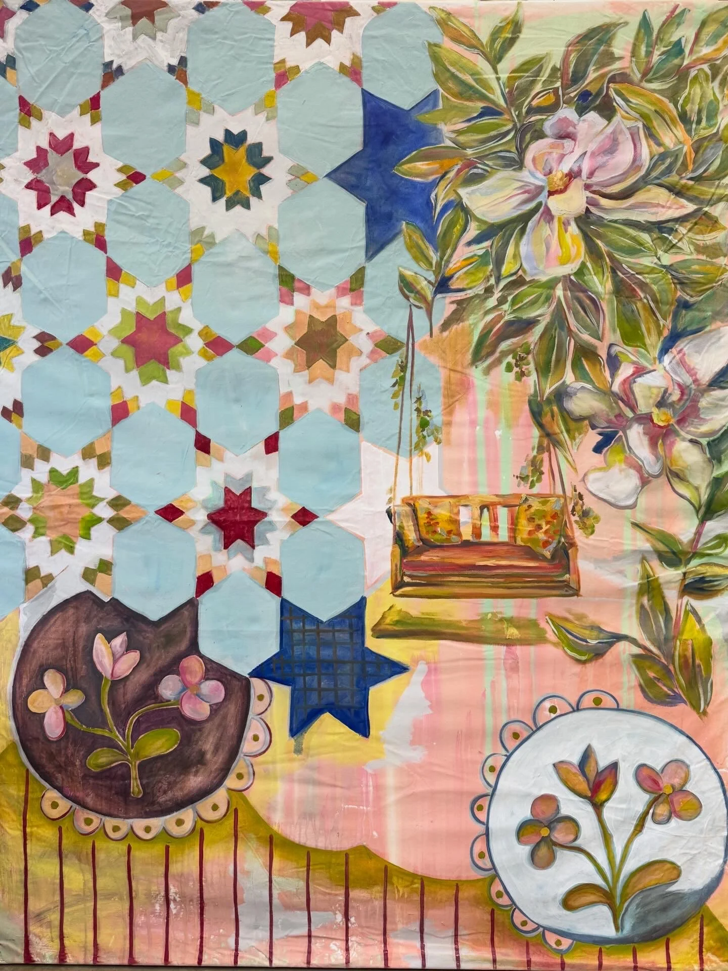 “MEMORY IS A PATIENT GARDENER ” ACRYLIC AND OIL PAINT ON STRETCHED, GESSOED FABRIC 48X60INSPRING 2026